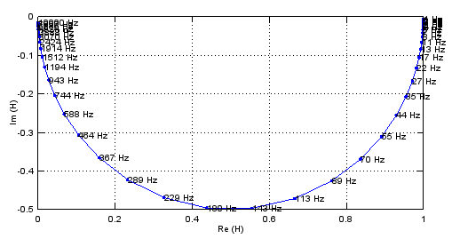 Ortskurve der Übertragungsfunktion, berechnet mit Octave