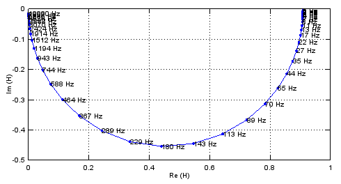 text(real(H(k)),imag(H(k)), [ num2str(fk) ' Hz' ])