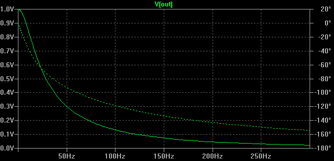 Frequenzgang der Übertragungsfunktion aus einer Simulation mit Spice zur Kontrolle